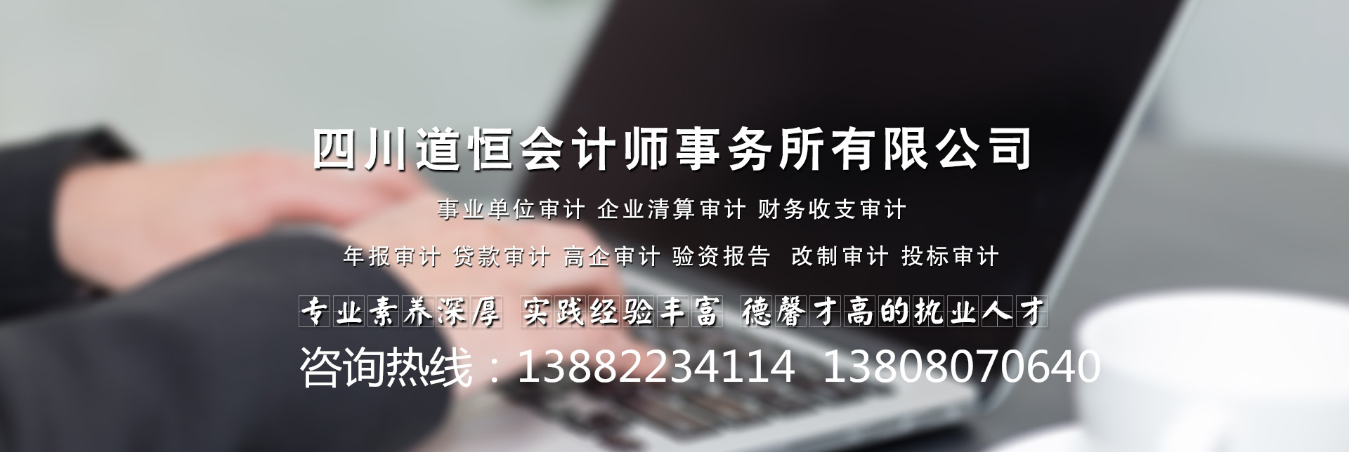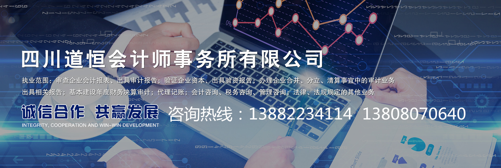 四川道恒會計師事務所有限公司是經四川省財政廳批準,依法設立的從事審計報告、驗資報告等業務的專業中介服務機構。執業范圍:審查企業會計報表、出具審計報告;驗證企業資本、出具驗資報告;辦理企業合并、分立、清算事宜中的審計業務,出具相關報告;基本建設年度財務決算審計;代理記賬;會計咨詢、稅務咨詢、管理咨詢;法律、法規規定的其他業務 四川道恒匯集了各類專業素養深厚、實踐經驗豐富、德馨才高的執業人才。公司多名注冊會計師還同時具有注冊資產評估師、注冊房地產估價師、高級會計師、注冊稅務師等多項相關執業資格,為公司從事的專業服務提供...